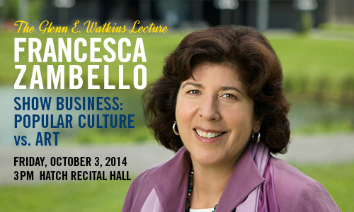 Francesca Zambello, artistic director of the Washington National Opera and artistic and general director of the Glimmerglass Opera, will give the Eastman School of Music’s 2014 Glenn E. Watkins Lecture on Friday, Oct. 3, at 3 p.m. in the school’s Hatch Recital Hall. Zambello’s lecture, titled “Show Business: Popular Culture vs. Art,” will be followed…
